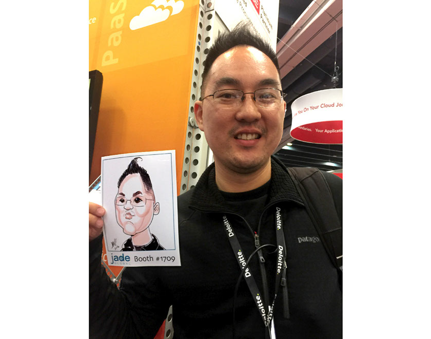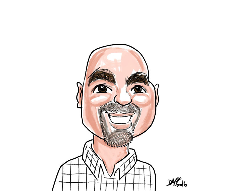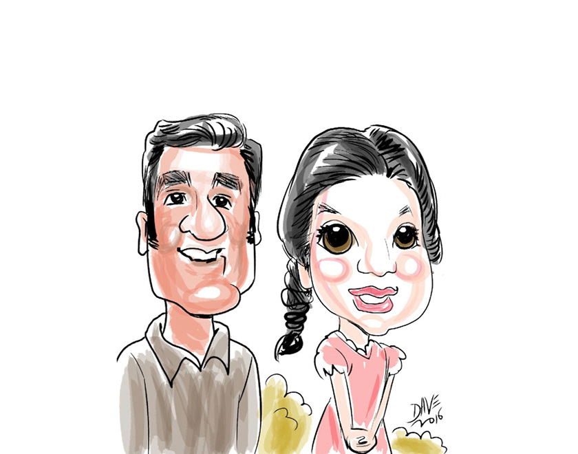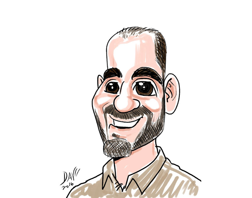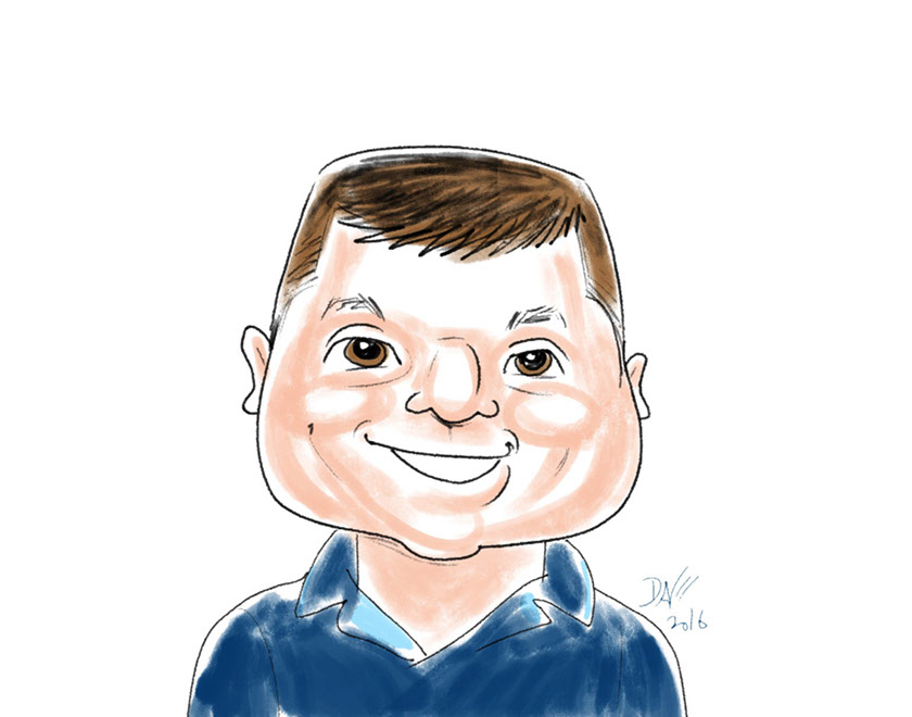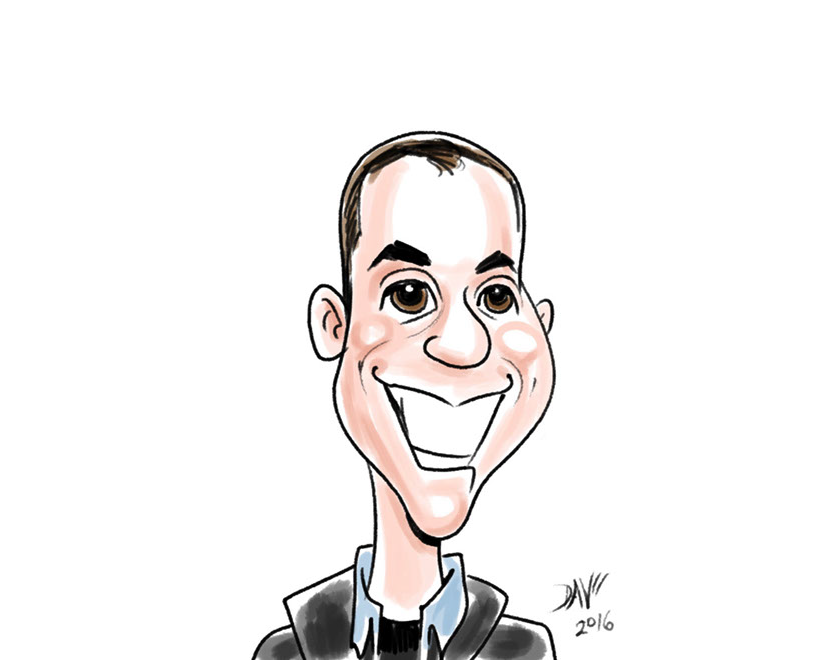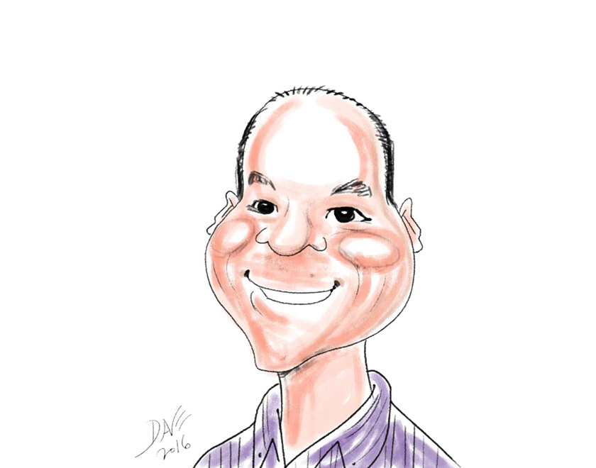Dave draws about 10 full-color digital portrait caricatures per hour, an average of about five minutes each.