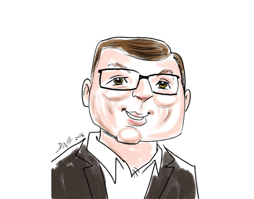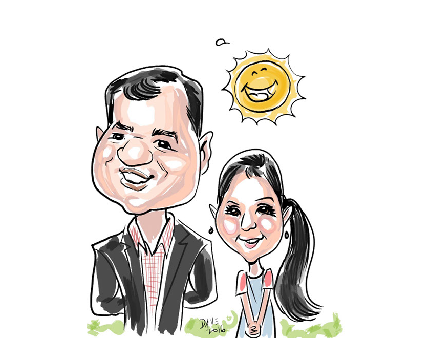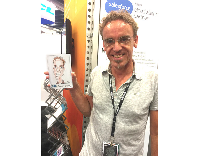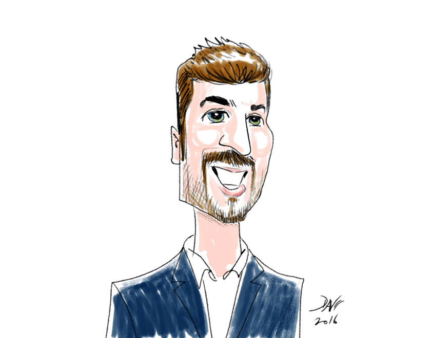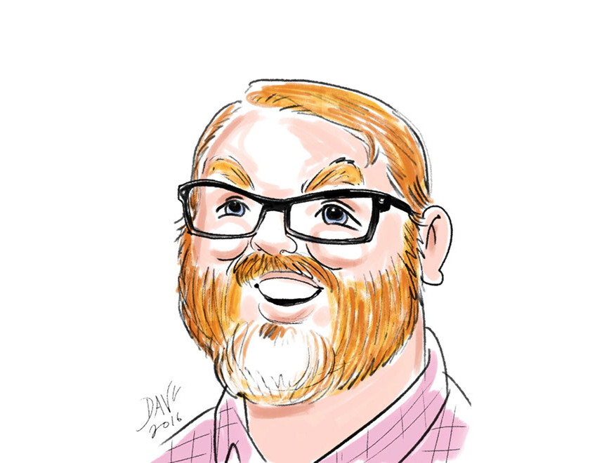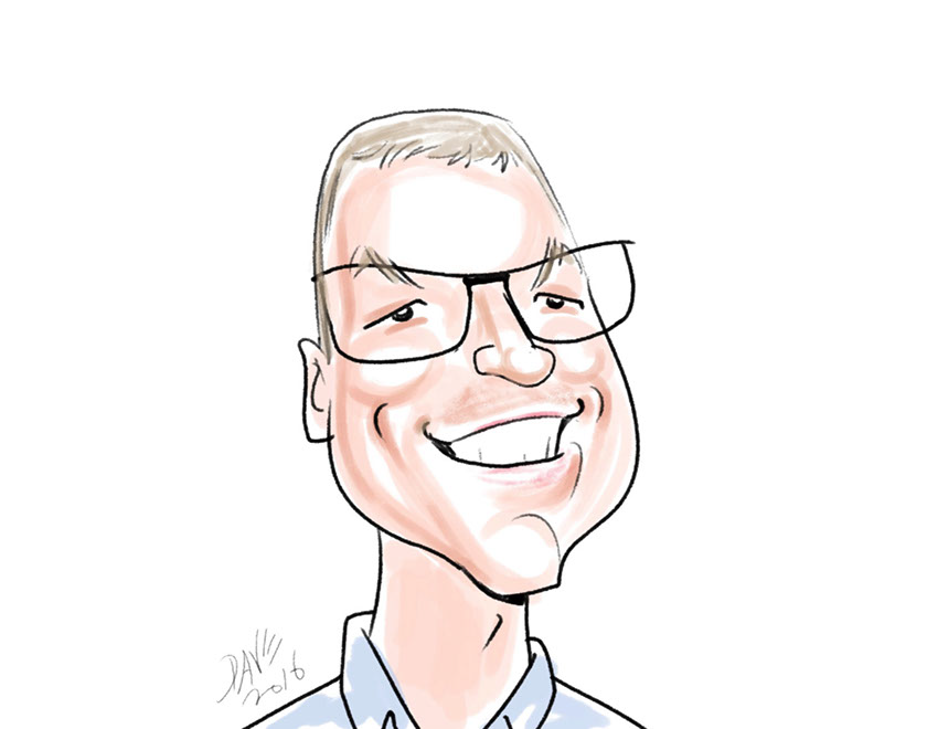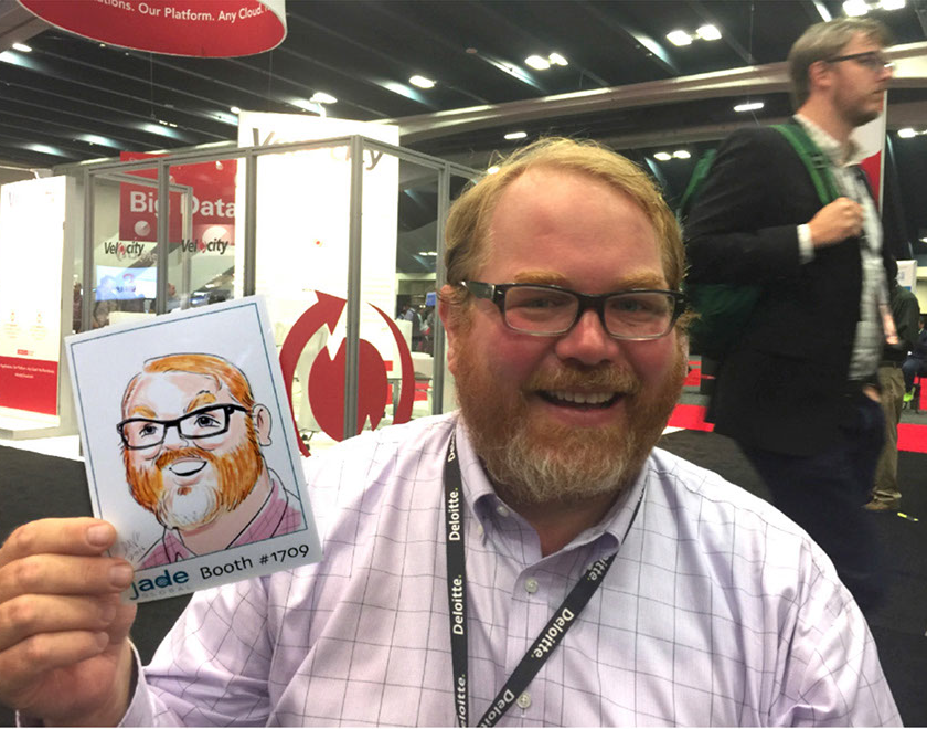 Dave draws about 10 full-color digital portrait caricatures per hour, an average of about five minutes each.