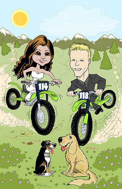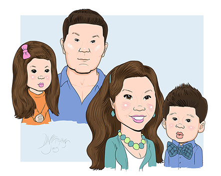 Caricature illustrations can be printed on posters, canvas, mugs, t-shirts, canvas bags to just about any material you desire. These media are ideal for gifts (birthdays, anniversaries, retirements), holiday and thank-you cards, weddings (save-the-dates, invitations, sign-in boards) and corporate branding.