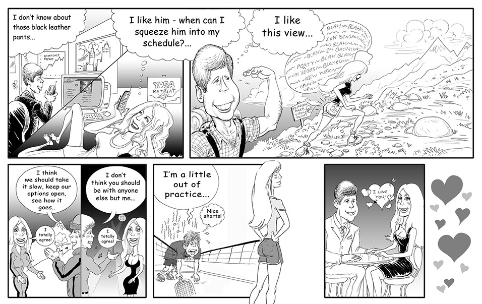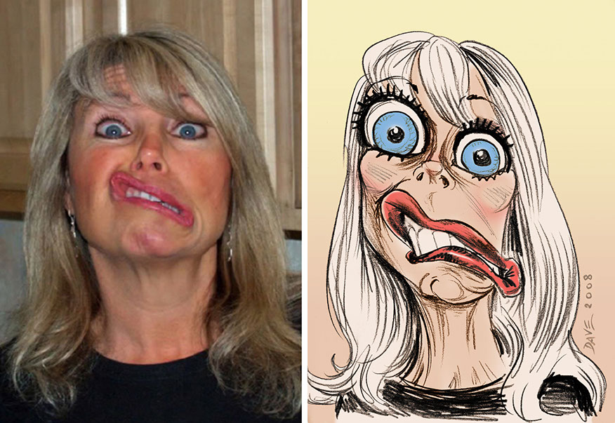 Dave can draw a caricature commission using the client's emailed or uploaded photos or videos. Upon a project deposit, Dave can meet you in person at a local coffee shop to sketch your ideas.