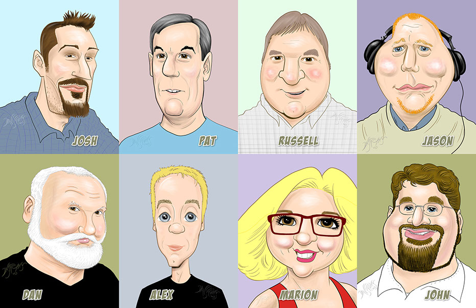 Included in the cost of a caricature commission is the concept sketch, editing and fine-lining and coloring. We usually build in a 1-2 rounds of edits early into the drafting, before Dave begins coloring. We provide our clients with a Illustration Process Diagram, which shows how our workflow unfolds. This manages expectations for both the client and CCBD.