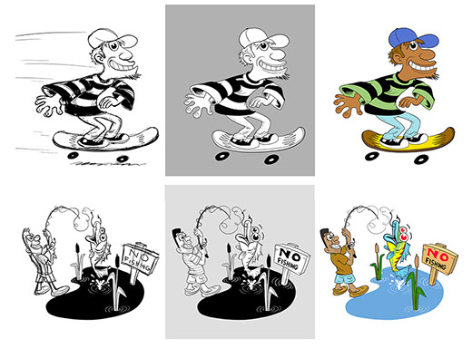 Need a new mascot for your business, special promotion, or new product design? Or how about a superhero developed for your comic book or graphic novel? Or a character for your mobile game or application? We have the most fun watching our clients' characters and mascots come to life with Dave's every swoosh and line!