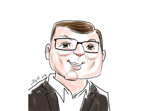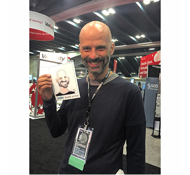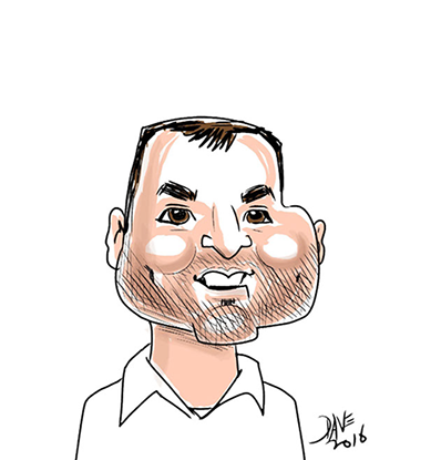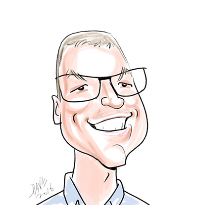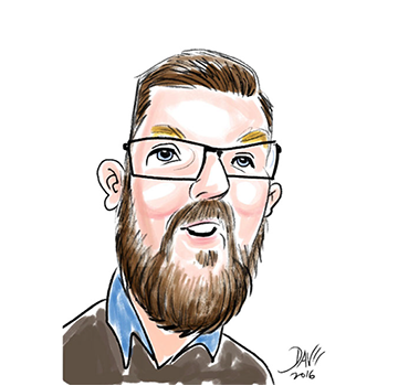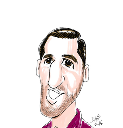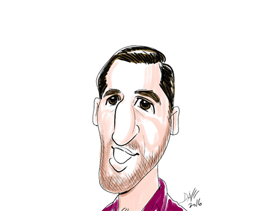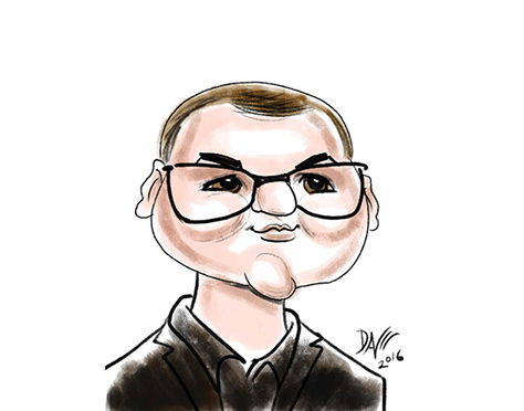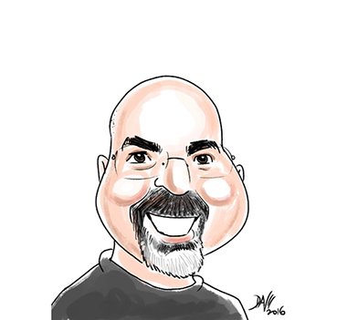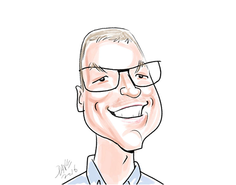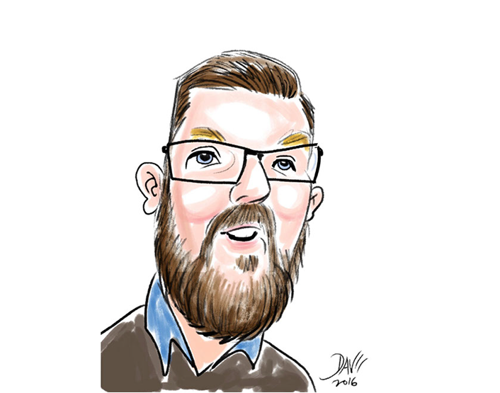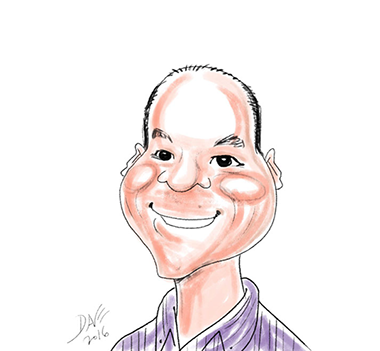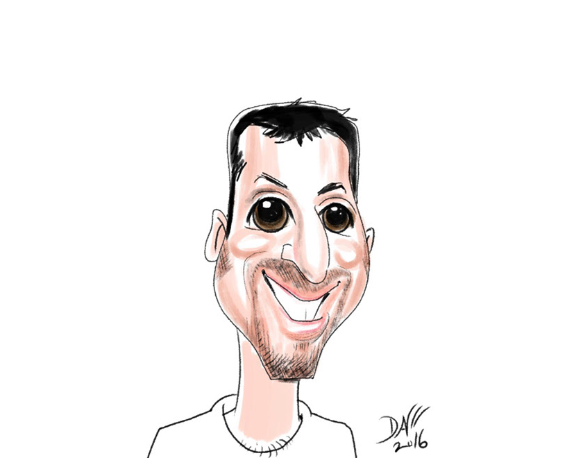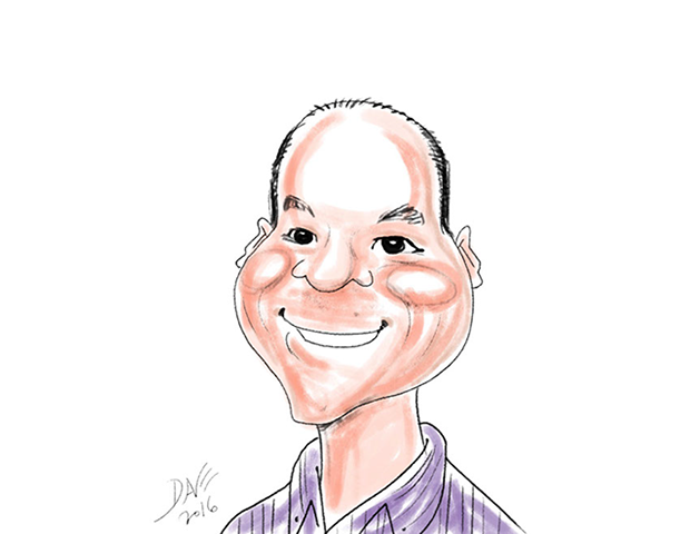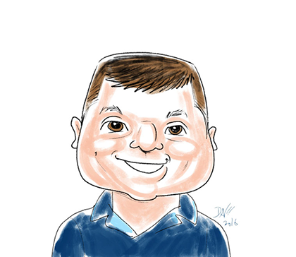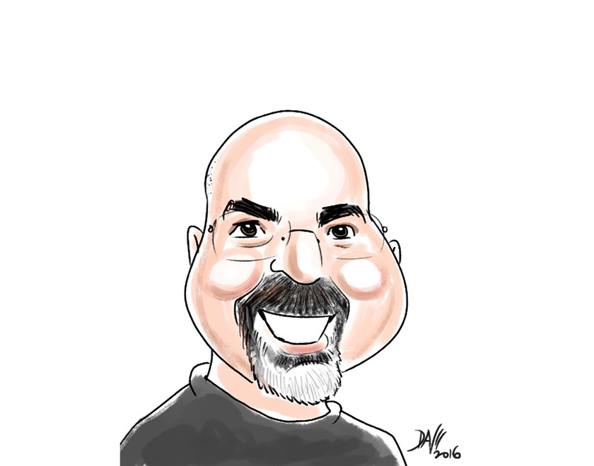 Dave draws about 10 full-color digital portrait caricatures per hour, an average of about five minutes each.