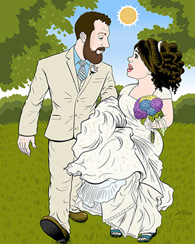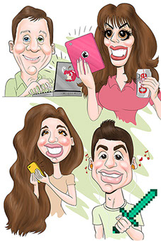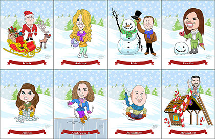 Caricature illustrations can be printed on posters, canvas, mugs, t-shirts, canvas bags to just about any material you desire. These media are ideal for gifts (birthdays, anniversaries, retirements), holiday and thank-you cards, weddings (save-the-dates, invitations, sign-in boards) and corporate branding.